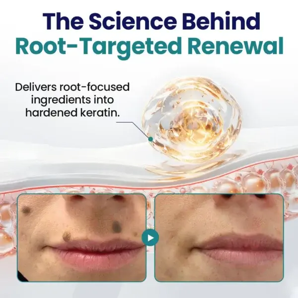 Most treatments only work on the small part you can see. The deeper core — thick, compacted keratin — stays untouched. Because acids, peels, and quick OTC solutions cannot reach this deeper structure, the raised area often reappears. This is why so many “fast” treatments only provide temporary results.